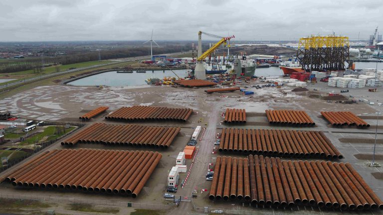 Fabrication work is being carried out in Lamprell’s Jebel Ali and Sharjah yards in the UAE, with the project now 73% complete, and the first eight fully assembled jackets and all 182 piles now delivered to the marshalling yard in Vlissingen.