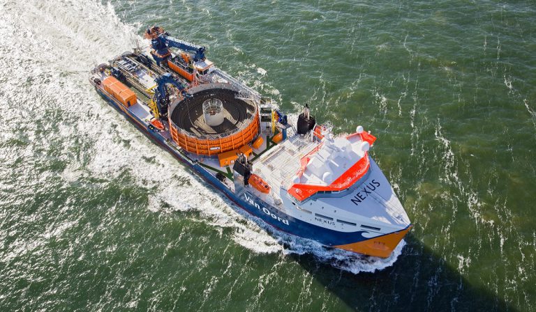 Van Oord’s cable laying vessel Nexus has started installing cables on Ørsted’s 450MW Borkum Riffgrund 2 offshore wind farm in the German North Sea.