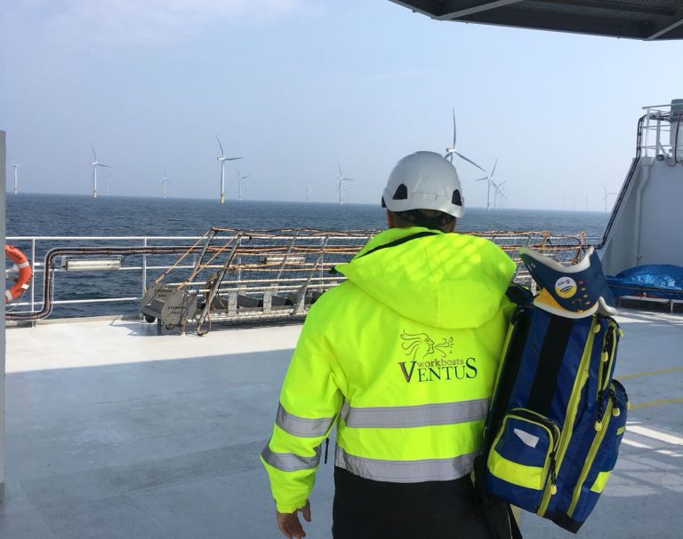 In March this year Ventus Workboats was awarded a contract for medical cover on board a Service Operations Vessel (SOV) based on a German offshore project. As part of the agreement Ventus is providing two offshore medics for technicians and staff. These medics run Fresh Case Clinics daily as well as providing Pre-Hospital Trauma Life Support (PHTLS) whenever needed, bridging the gap between incident and shore facilities.