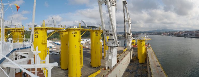 BigLift’s cargo ship Happy Star brought the first eleven transition pieces for the Deutsche Bucht (DeBu) offshore wind farm to the Cuxhaven port in Germany on 14 July, after loading them three days earlier in the Port of Avilés, Asturias, Spain.