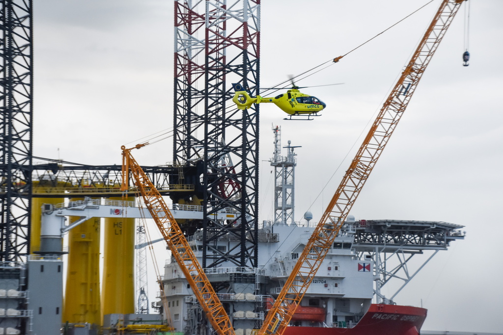 Pacific Osprey, which has a 1,425-ton operating crane capacity, is currently working on the Hohe See offshore wind farm, and had three monopiles and three transition pieces on board when the crane boom collapsed.
