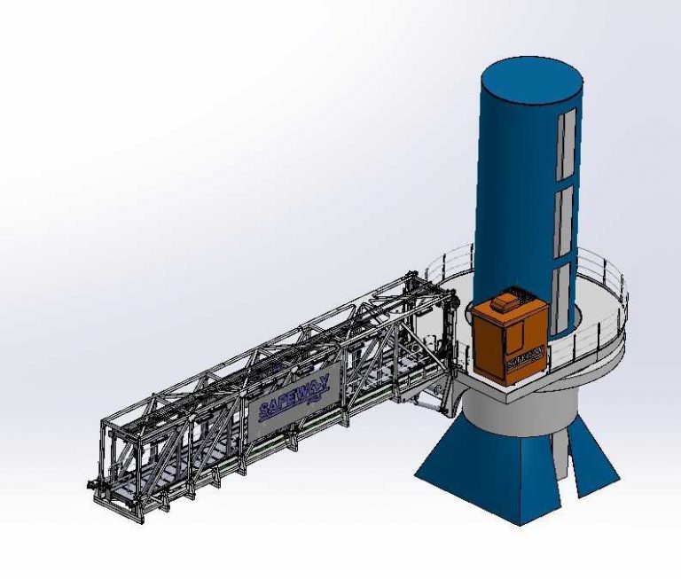 According to the Dutch company, the Safeway Albatross gangway features a lift integrated into the mast of the offshore structure for the transport of goods and people, with an option to extend to the below-deck storage hold of a platform supply vessel (PSV).
