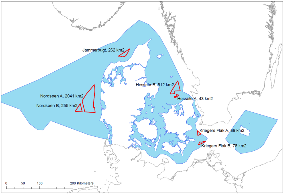 Four areas were selected as having the potential for accommodating offshore wind farms, including a site in the North Sea off the Jutland west coast, one in Jammerbugt, one at Kriegers Flak and one at Hesselø.