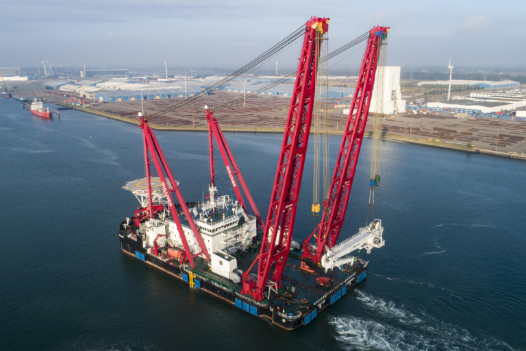 The heavy lift vessel Gulliver has installed a 253 t Huisman crane on board DEME Group’s cable laying and multipurpose vessel the Living Stone.