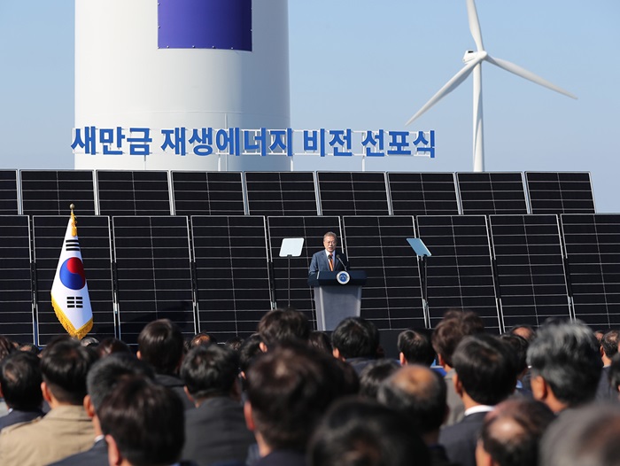 “One of the world’s biggest solar energy and offshore wind energy generation facilities will be built in the Saemangeum area,” President Moon was reported by Korea.net as saying.