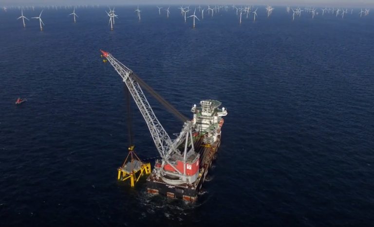 Seaway Heavy Lifting’s Oleg Strashnov has lifted the 1,500-tonne jacket from a barge and placed it onto the seabed in the Belgian North Sea some 40km off the Zeebrugge coast.