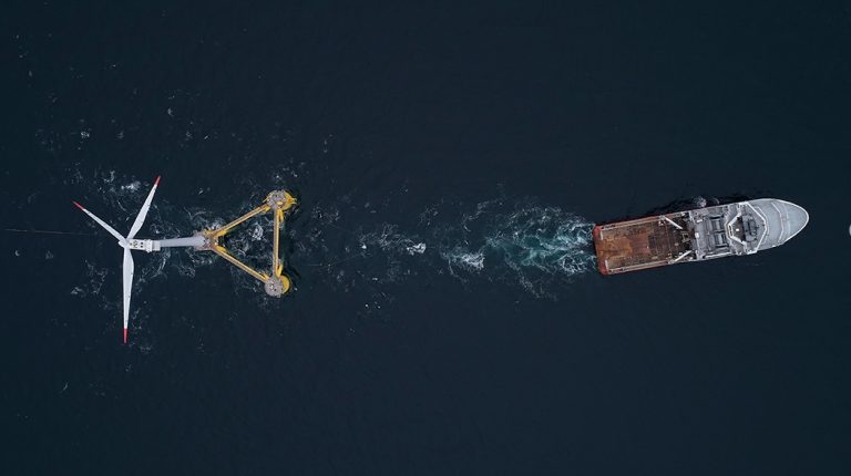 The 2MW Vestas floating turbine was towed from the Port of Dundee to the installation site some 15km offshore Aberdeen in mid-August and shortly after began producing power to the grid.