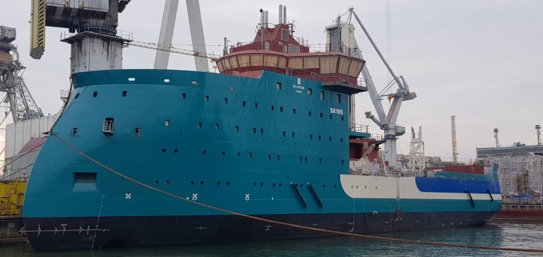 Ulstein Verft is now in charge of finalizing the outfitting of the vessel and the installation of the SMST provided mission equipment – a motion compensated gangway and a 3D crane.