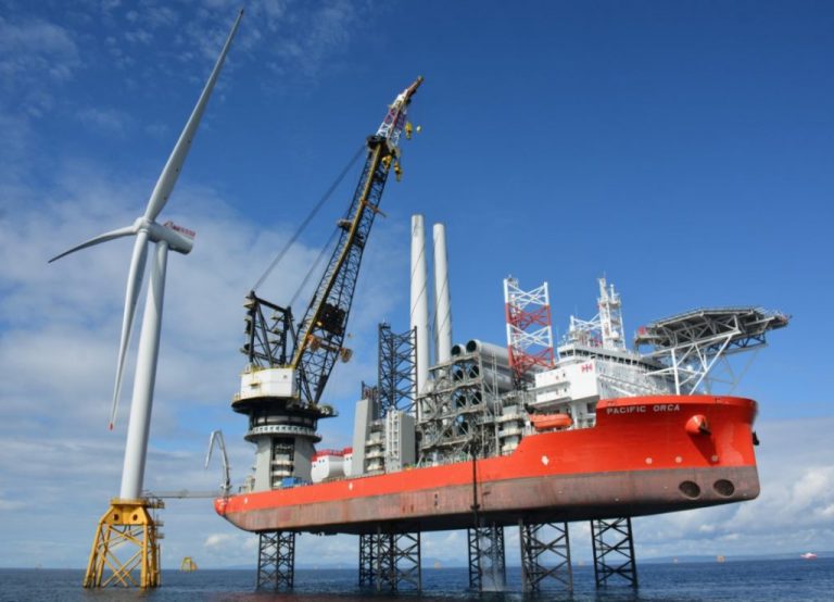 Swire Blue Ocean’s jack-up is loading the turbines in sets of five at the Nigg port, Siemens Gamesa’s pre-assembly base, and installing them at the site in Outer Moray Firth.