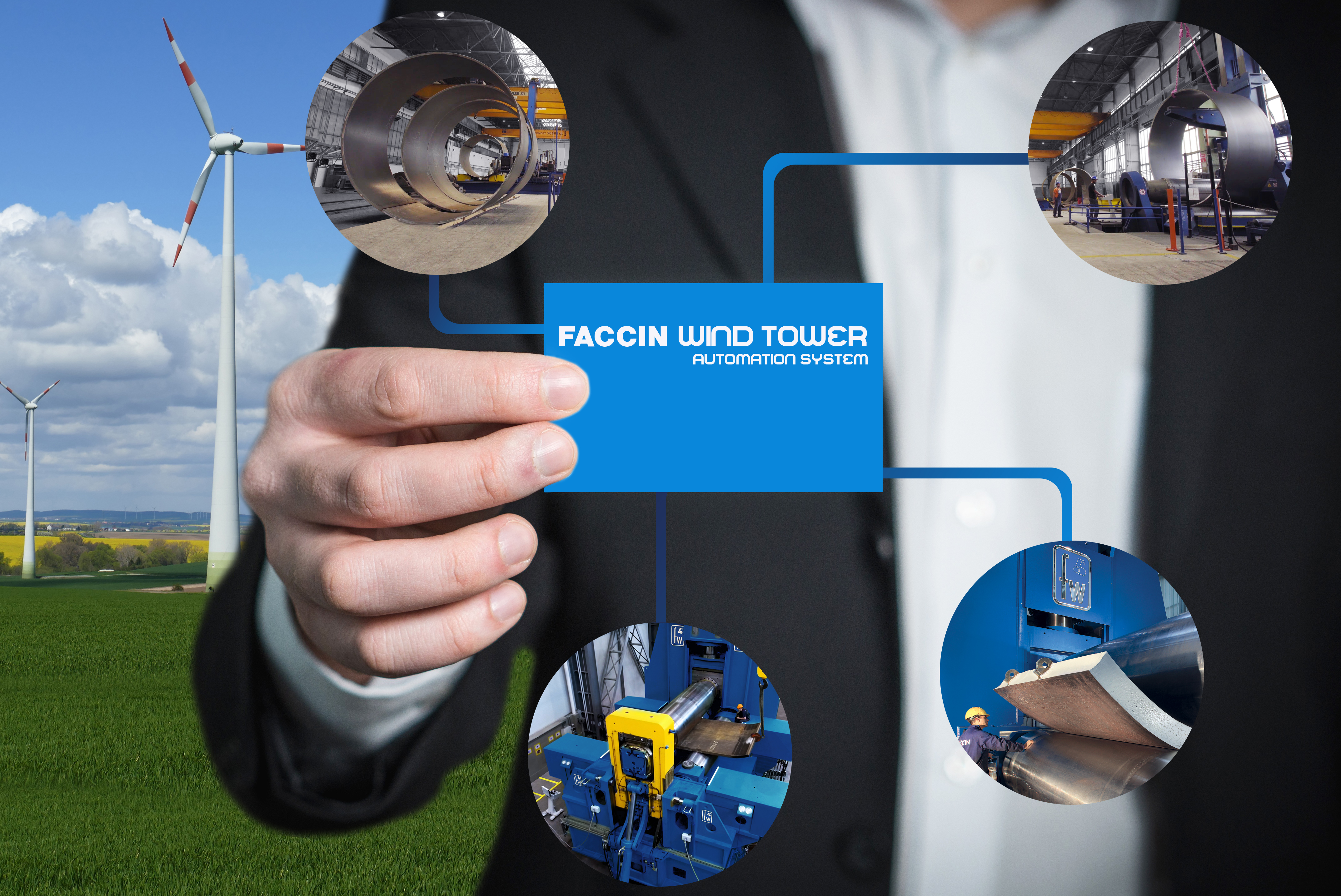 “Faccin is proud to have already supplied machines to the main players in Europe, USA and ASIA and to contribute to the green energy production. The company strongly believes in the future of the wind towers business onshore -particularly the offshore wind farms where the use of plate bending rolls is essential.”