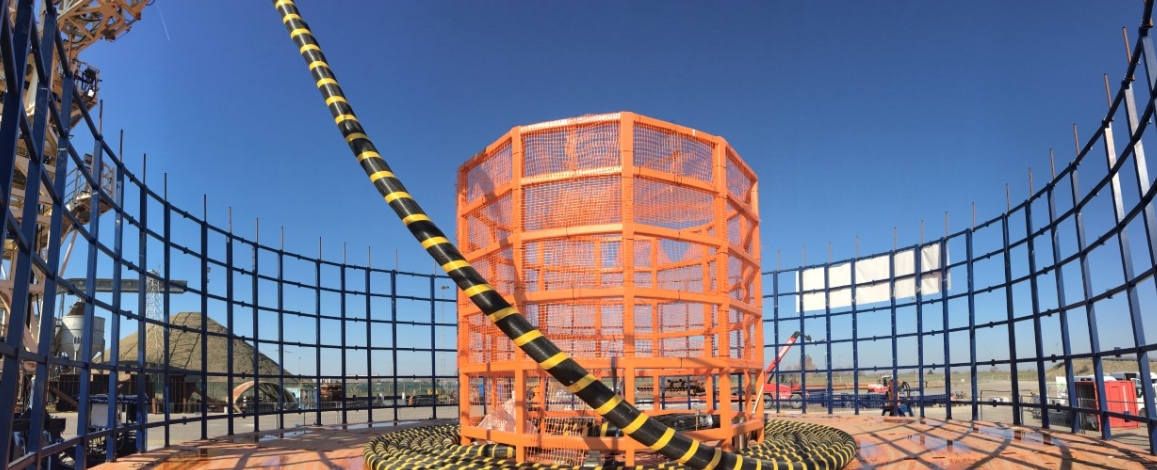 The completion of this final spooling operation marks the end of a year-long contract for Van Oord, which included export cable load-in from HLV Da Ji, interim storage and protection, export cable load-out to CLV Nexus, spare cable transpooling and handling operations, and finally transportation of the loaded baskets to the long term storage site in Belgium.