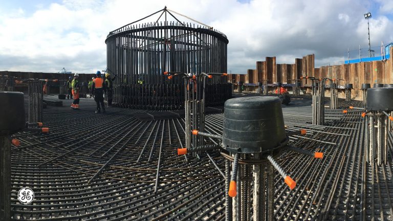 First activities on the ground started earlier this year with the construction of the Haliade-X 12MW foundation, which will contain 50 piles that will be covered by a 28m long foundation plate.