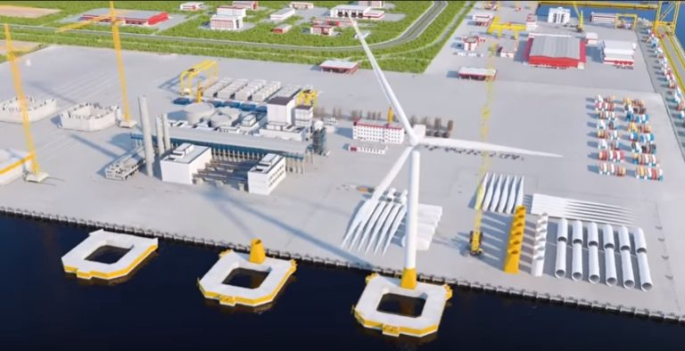 The ring-shaped floating foundation, known as the Damping Pool, has been developed and patented by Ideol and built by Bouygues Travaux Publics.