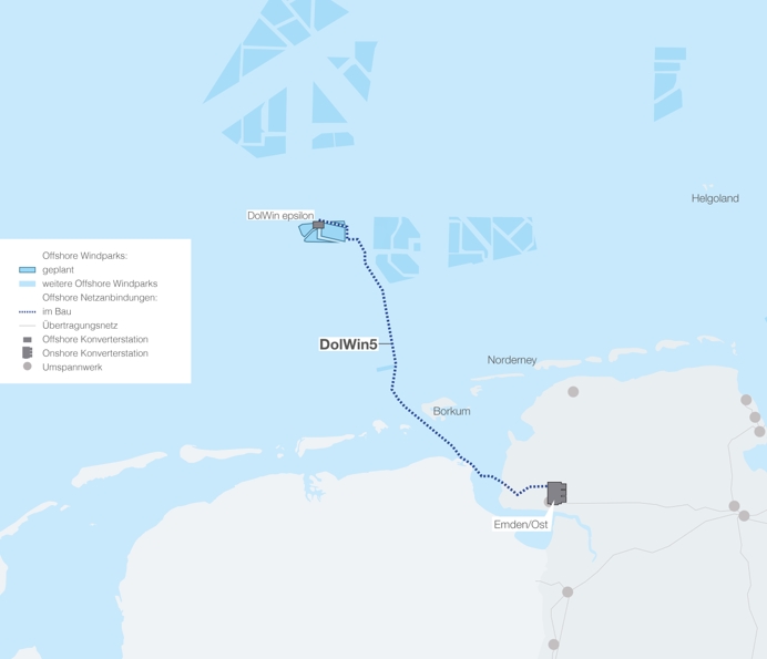 The connections will link the offshore converter platform DolWin epsilon from some 100km offshore to the mainland Emden/Ost converter station.