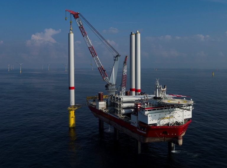 Jan De Nul’s jack-up Taillevent has started installing the first wind turbine on the 200MW Trianel Windpark Borkum II (TWBII) wind farm offshore Germany.