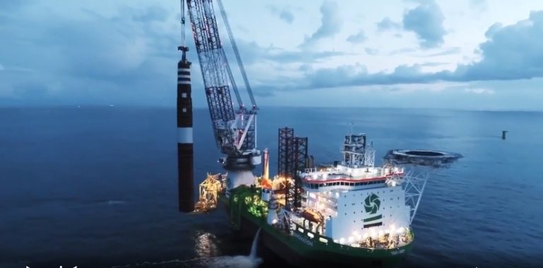 DEME Group’s jack-up vessel Innovation has installed the first foundation at the SeaMade offshore wind farm in Belgium.