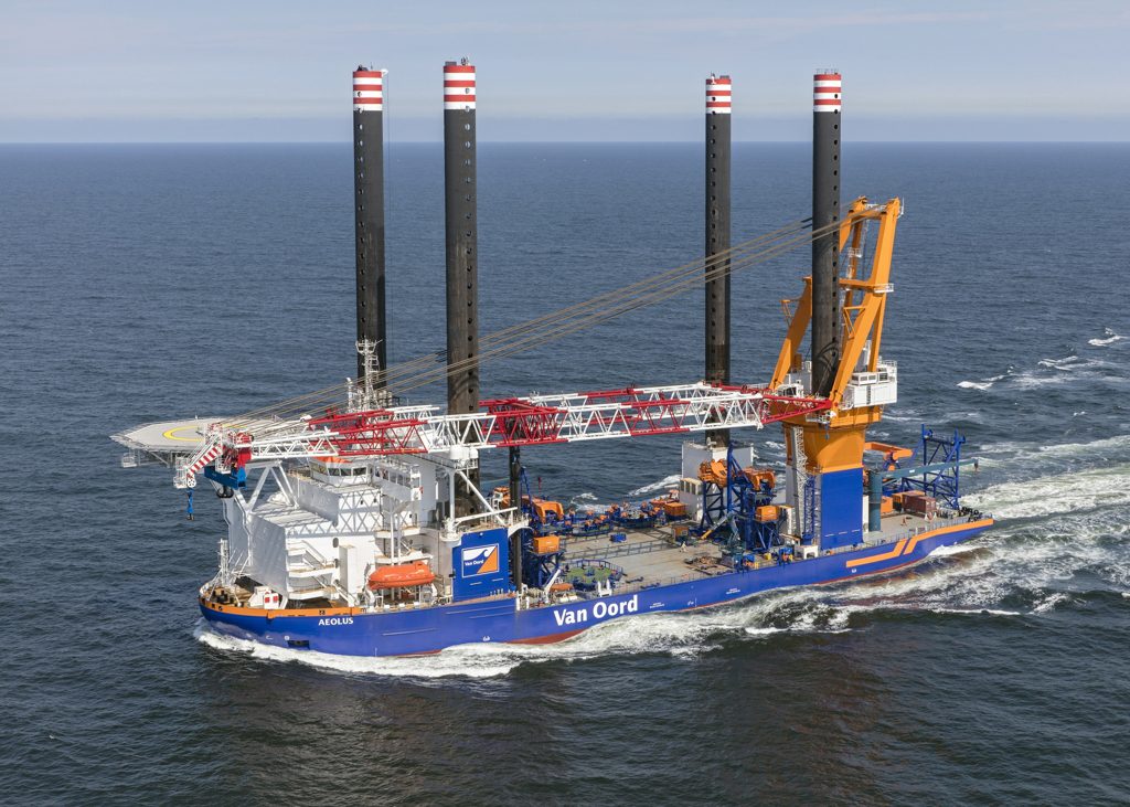 Van Oord’s offshore installation vessel Aeolus has arrived at the Sif terminal in Rotterdam to load the first monopiles for the 731.5MW Borssele III & IV offshore wind farm.