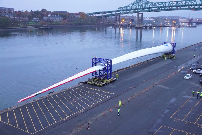The blade for GE’s Haliade-X 12MW offshore wind turbine has arrived at MassCEC’s Wind Technology Testing Center (WTTC) in Boston, U.S.