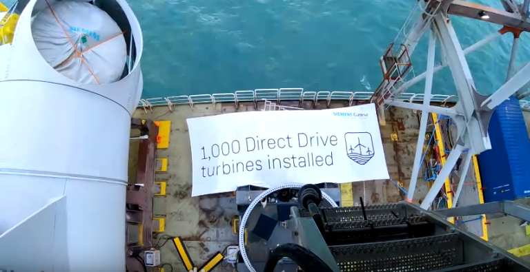 Siemens Gamesa has shared a video showing the installation of its 1,000th offshore Direct Drive wind turbine.