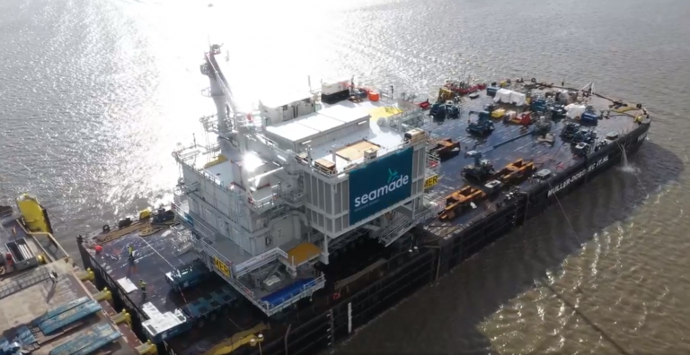 The first of the two offshore substation topsides to be installed on the SeaMade wind farm in the Belgian North Sea has been loaded onto a barge at ENGIE Fabricom’s yard in Hoboken, Belgium.