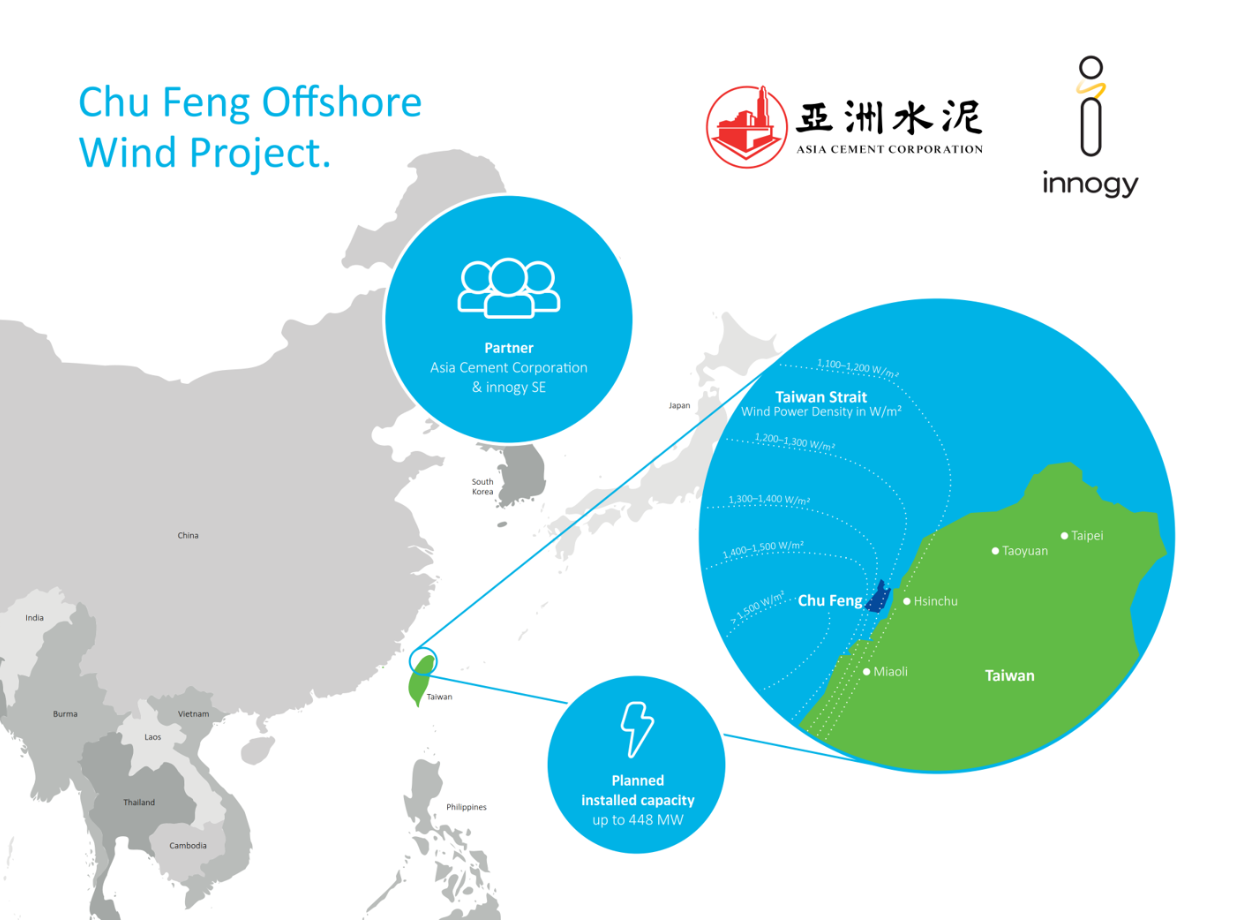 Essen-based energy company innogy has entered into a strategic partnership with Asia Cement Corporation to jointly develop the 448 MW Chu Feng offshore wind project in Taiwan.