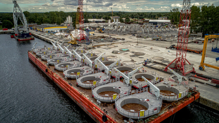 18 CWPs have so far been loaded out and delivered to Bladt. A barge carrying the next shipment of 18 units to Aalborg, Denmark will sail out in two weeks.