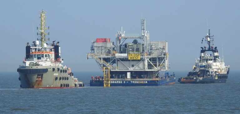 Three vessels installing the Triton Knoll offshore substation at the project site