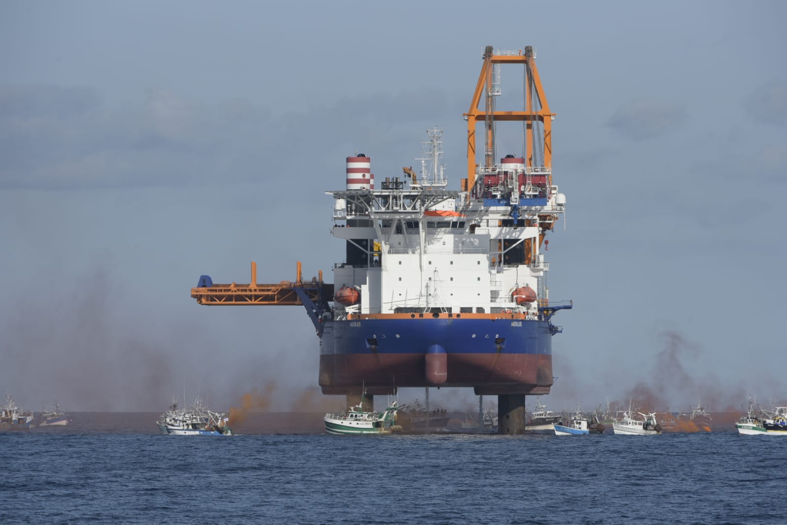 Maritime Prefecture and ATLANT Command-in-Chief this morning called on the fishermen to avoid any behaviour endangering people and property and reiterated that there was currently a prefectural decree in place that regulates maritime activities in the bay during construction work on the 496 MW wind farm. Fishermen were also reminded today by the authorities that that they were not allowed to come closer than 550 metres to the vessel.