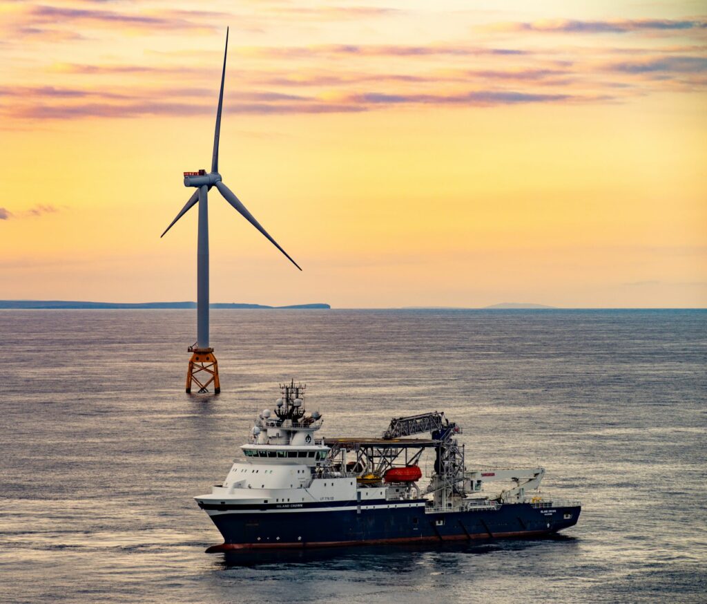 A photo of the Island Crown vessel at the Moray East offshore wind farm