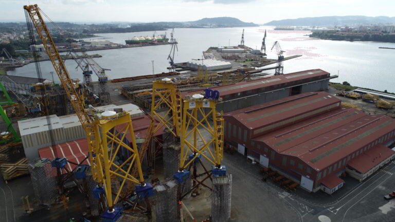 The companies completed the first jacket foundation for the French offshore wind farm at the shipyard in Fene in April, after receiving the first batch of components manufactured at the French port of Brest.