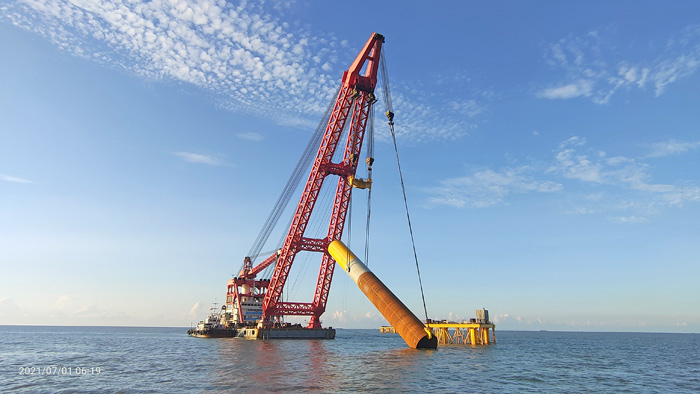 A photo of Guangzhou Salvage Bureau installing foundations in Vietnam