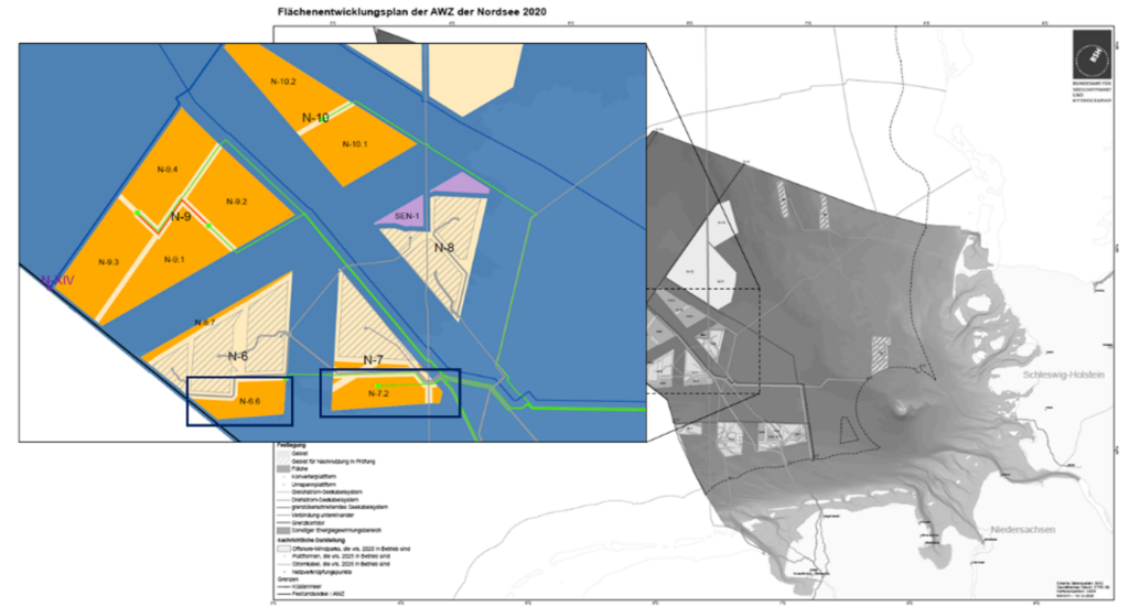 According to BSH, the findings on the site N-7.2 will be published by the Federal Network Agency BNetzA within the scope of the site tendering no later than six months before the bid date on 1 September 2022, and for the site N-6.6 no later than six months before the bid date on 1 September 2024.