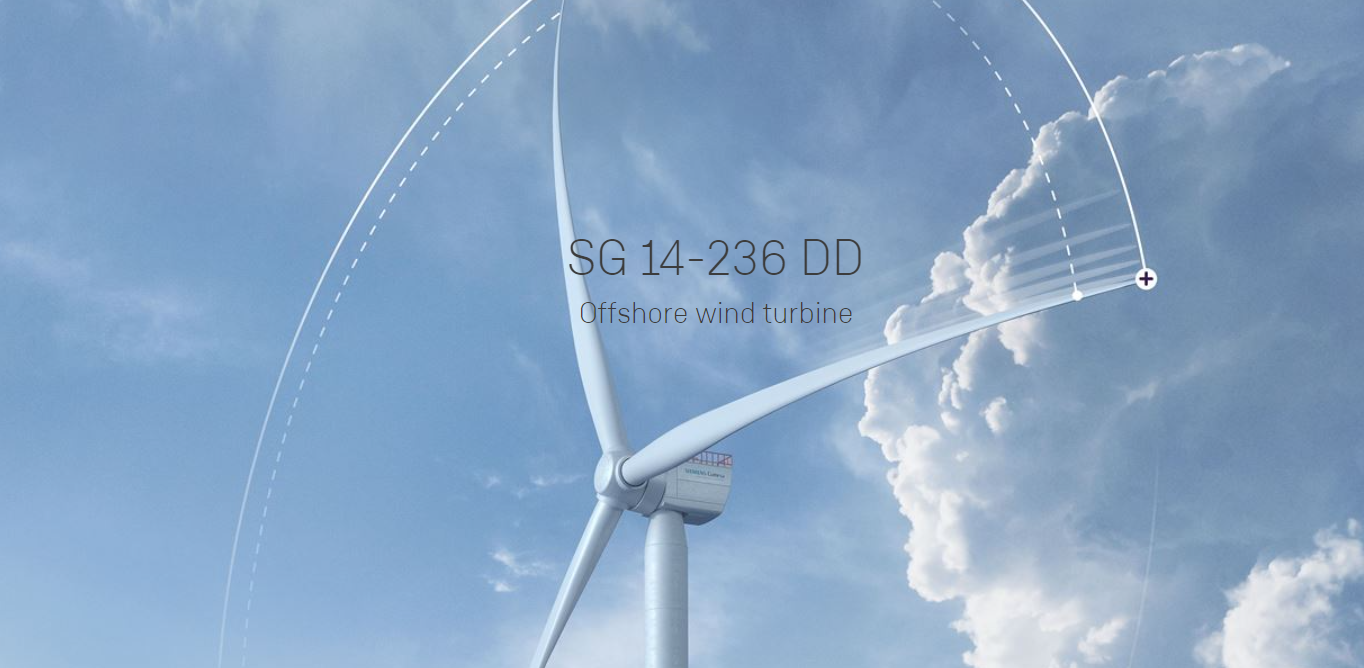 The newly introduced, enhanced SG 14‑236 DD offshore wind turbine has a 236-metre diameter rotor, a 43,500 m2 swept area, and a capacity of up to 15 MW. The model is based on Siemens Gamesa’s existing flagship turbine – the SG 14-222 DD.
