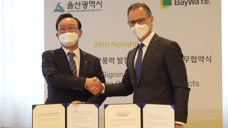BayWa r.e. has signed a Memorandum of Understanding (MOU) with Ulsan City, South Korea, for the development of floating offshore wind projects off the coast of Ulsan.