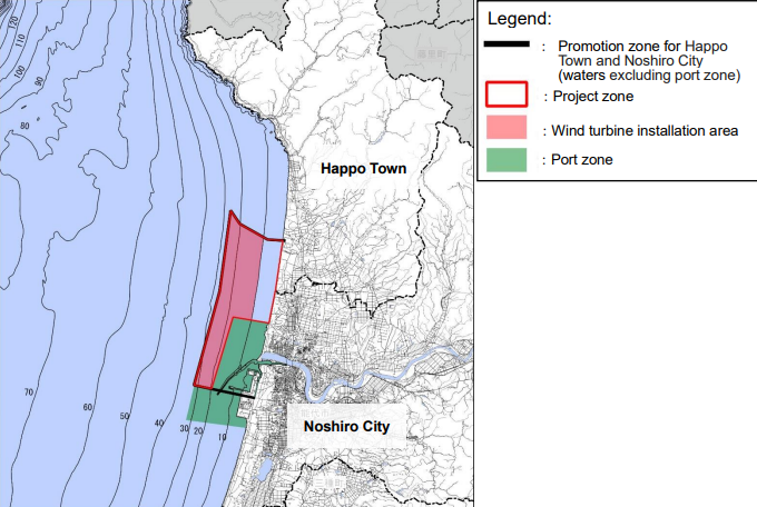 The Project will be located off the coast of Happo Town and Noshiro City and include as many as 30 wind turbines with a maximum generation capacity of 356 MW.
