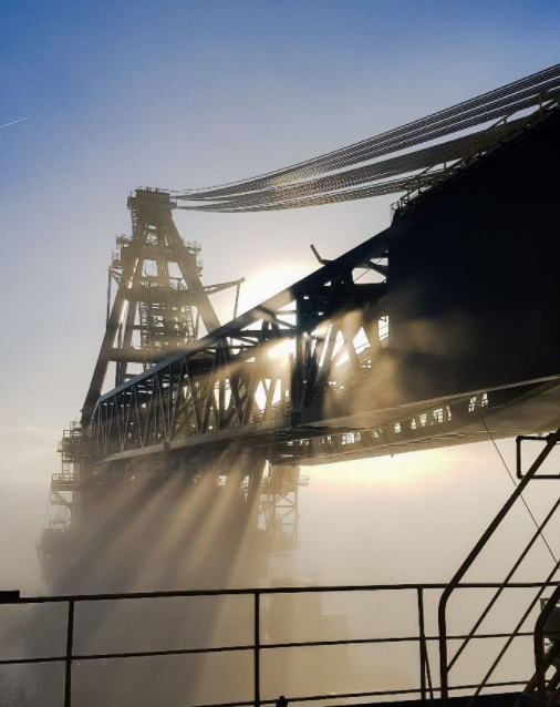 With the new adjustment system, Thialf will be able to lower its cranes and fold the A-frames to create a sufficient air gap when combined with ballasting between the vessel and the Storebaelt Bridge.