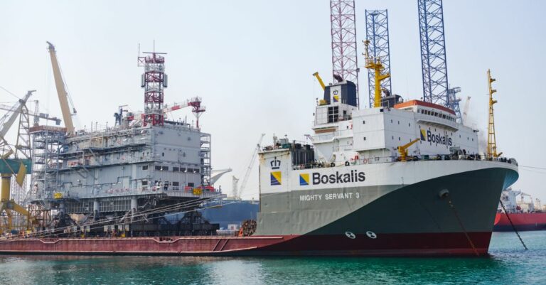 In charge of the weighing, transport and load-out of the 700 MW, 3,950-tonne Hollandse Kust Zuid Beta topside is the heavy lift specialist Mammoet, which loaded the topside onto a Boskalis vessel last week.
