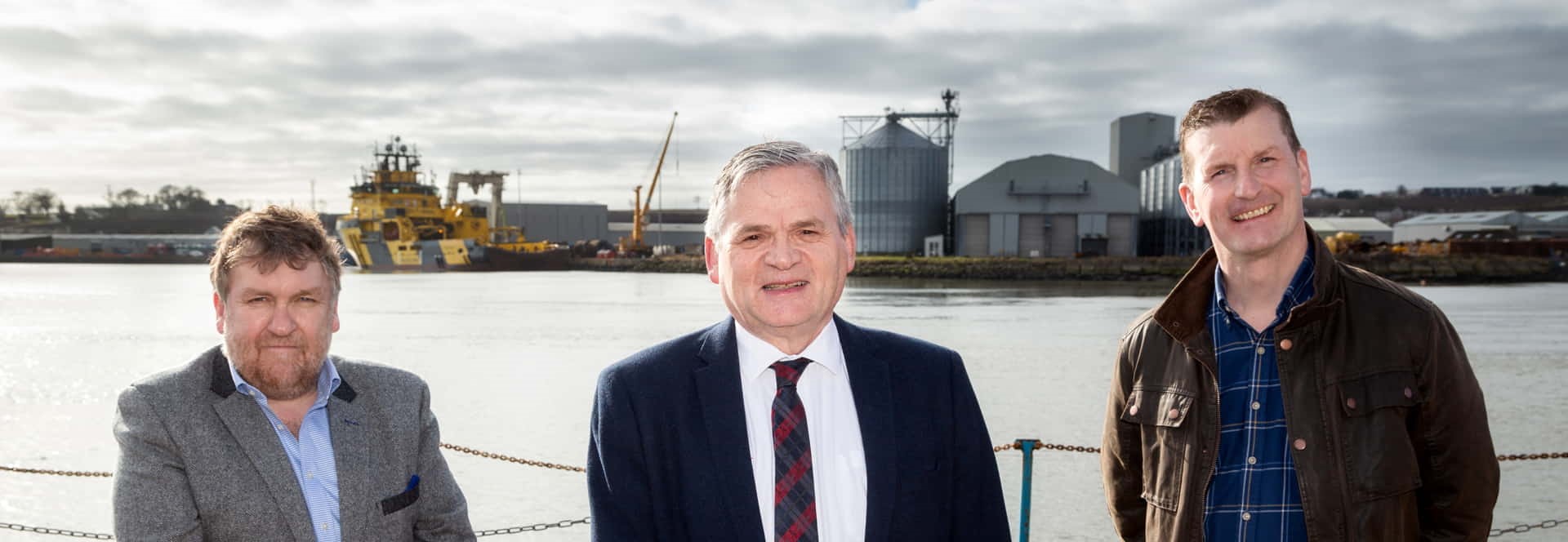 Tom Hutchison, Montrose Port Authority; Bill Main, Balmoral Comtec; Dave Doogan, MP for Angus; Photo: Balmoral Comtec