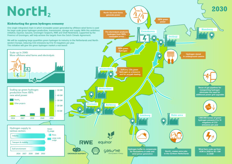 NortH2 is a large-scale offshore wind-to-hydrogen electrolysis project being developed in the Eemshaven area, the Netherlands.