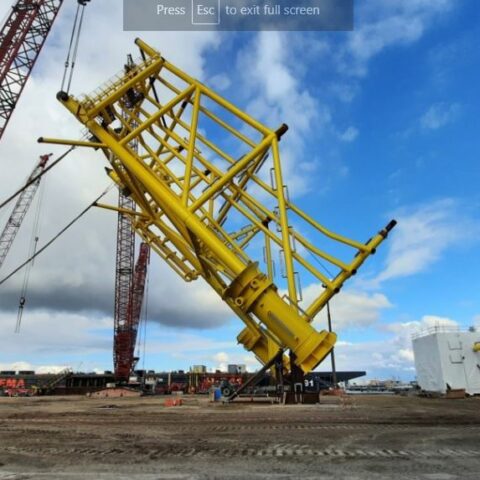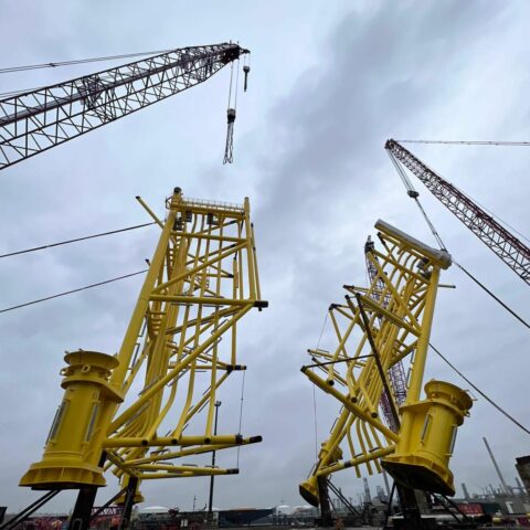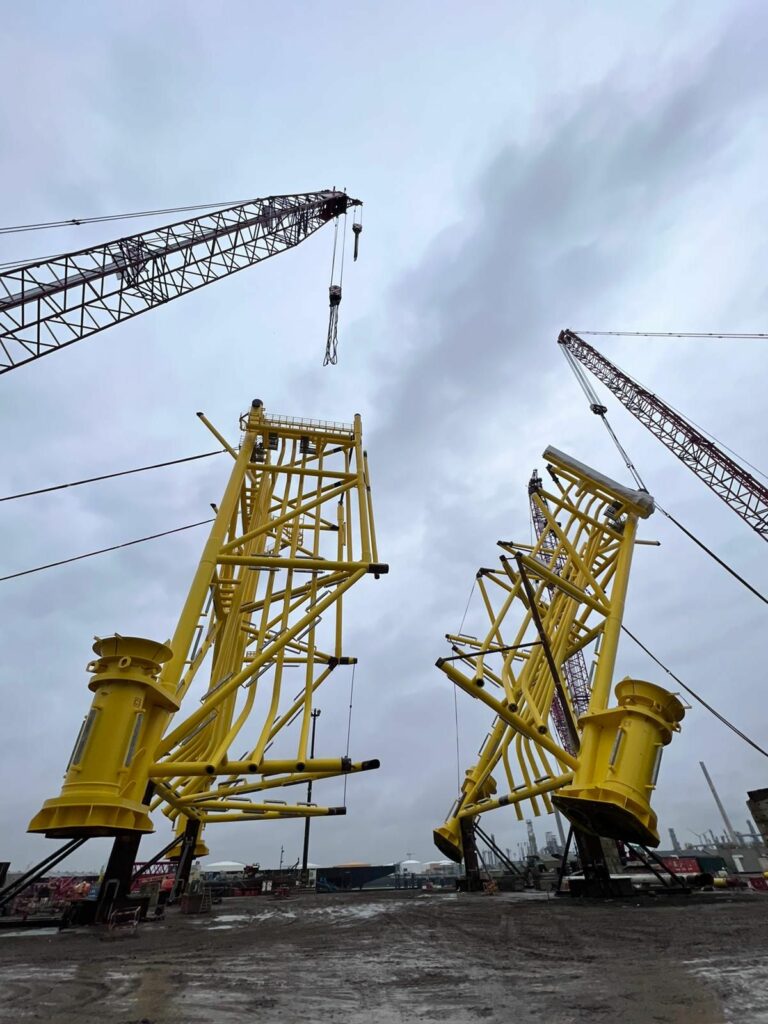 Smulders has announced that both parts of the jacket for TenneT’s Hollandse Kust (West Alpha) substation were upended at the Heerema yard in Vlissingen, the Netherlands.