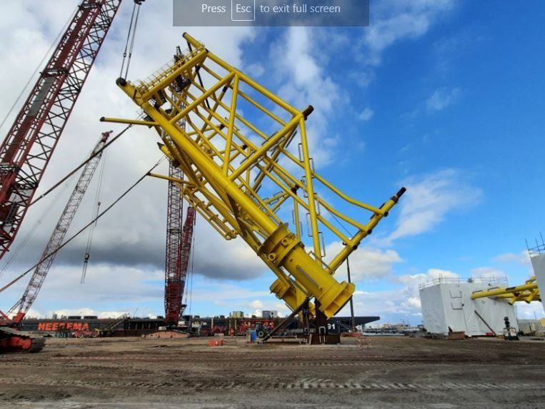 According to Smulders, the jacket structure is 49 metres high, approximately 2,300 tonnes heavy, and will be ready this summer.