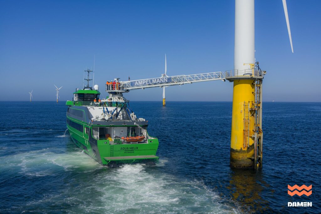 Dutch shipbuilder Damen has completed crew change trials on its Fast Crew Supplier (FCS) 7011 vessel in the North Sea, using the Ampelmann S-type motion-compensated gangway.