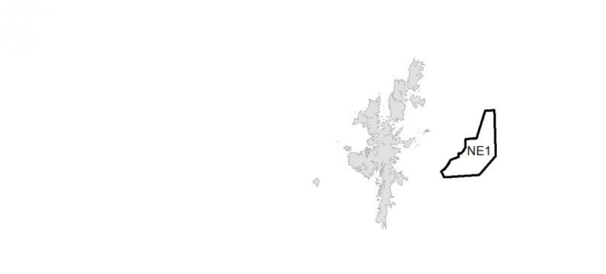 The NE1 area is located in the waters 18 kilometres east of Shetland and covers 751 square kilometres which are estimated to be able to house 2 GW of installed offshore wind capacity, equating to 53 per cent of the total area.
