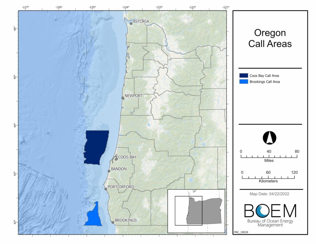 The two areas are put for this Call after BOEM announced earlier this year that it had identified three Call Areas in the Pacific Ocean offshore Oregon for wind energy development: Coos Bay, Bandon, and Brookings, which have a total installed capacity potential of 17 GW.