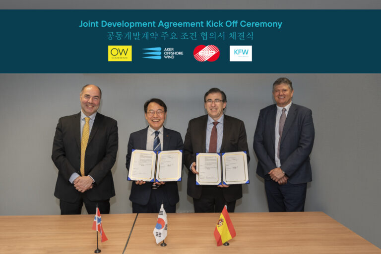 EDP Renewables, which established Ocean Winds together with Engie, and Aker Solutions invested in the development company Korea Floating Wind Power (KF Wind) back in 2019, when they joined the founding shareholder WindPower Korea. Now, Ocean Winds and Aker Offshore Wind hold 66.7 per cent and 33.3 per cent of the company, respectively.