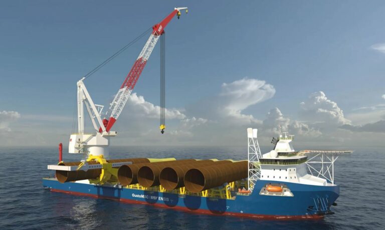 “GustoMSC’s new ENSIS heavy lift crane vessel series addresses the needs of the growing offshore wind foundation market. With monopiles and jackets increasing in size and weight and the continuous need for efficiency in installation, a new generation of vessels is needed,” GustoMSC said.