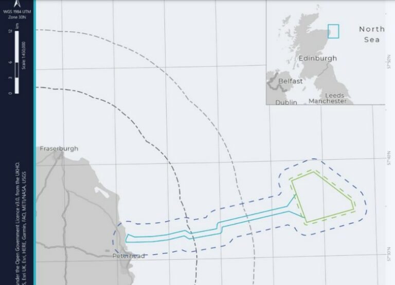 It is located approximately 35 kilometres east of Peterhead in the Northeast of Scotland, in an outline area of interest of approximately 67 square kilometres with water depths up to 115 metres.