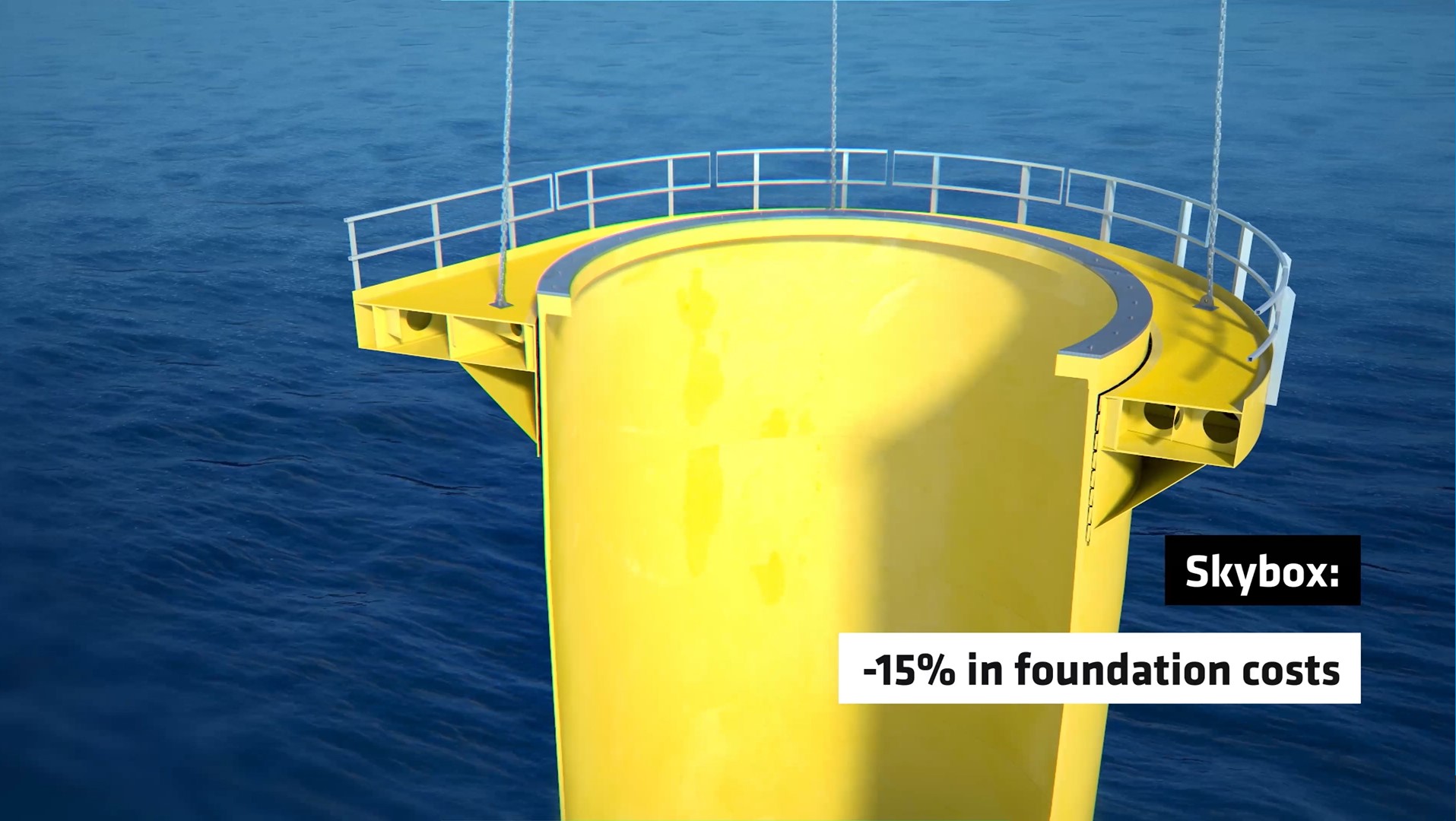 The project has three main benefits. Firstly, there is no need to weld brackets onto the monopile. Secondly, the installation of all functionalities can be conducted in one lift. Thirdly, the Skybox is installable using a floating vessel on DP.
