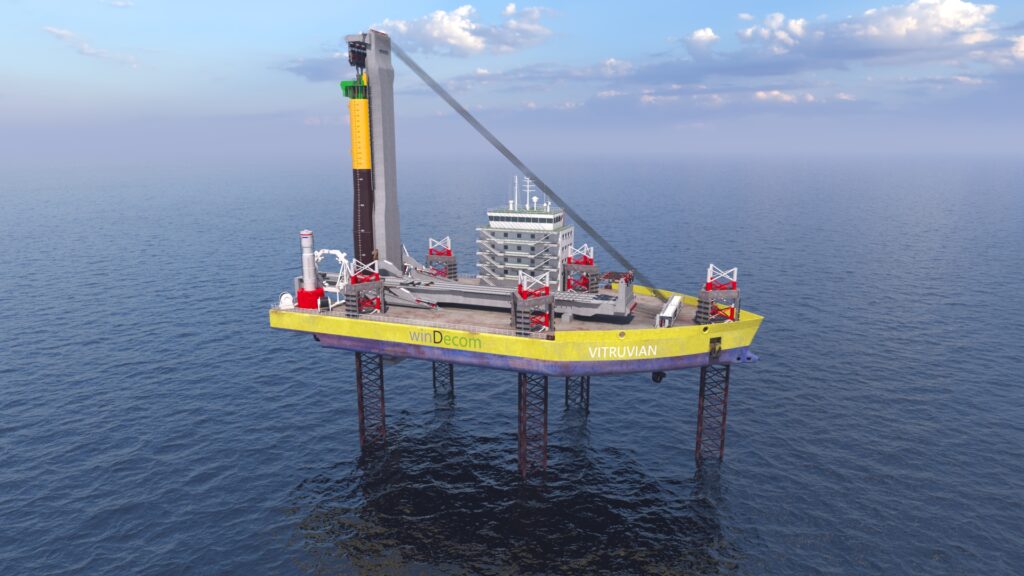 The new jack-up, named Vitruvian, will be able to transport and install 5,000-tonne XXXL monopiles, WinDecom says, adding that the vessel would also be used for decommissioning work.