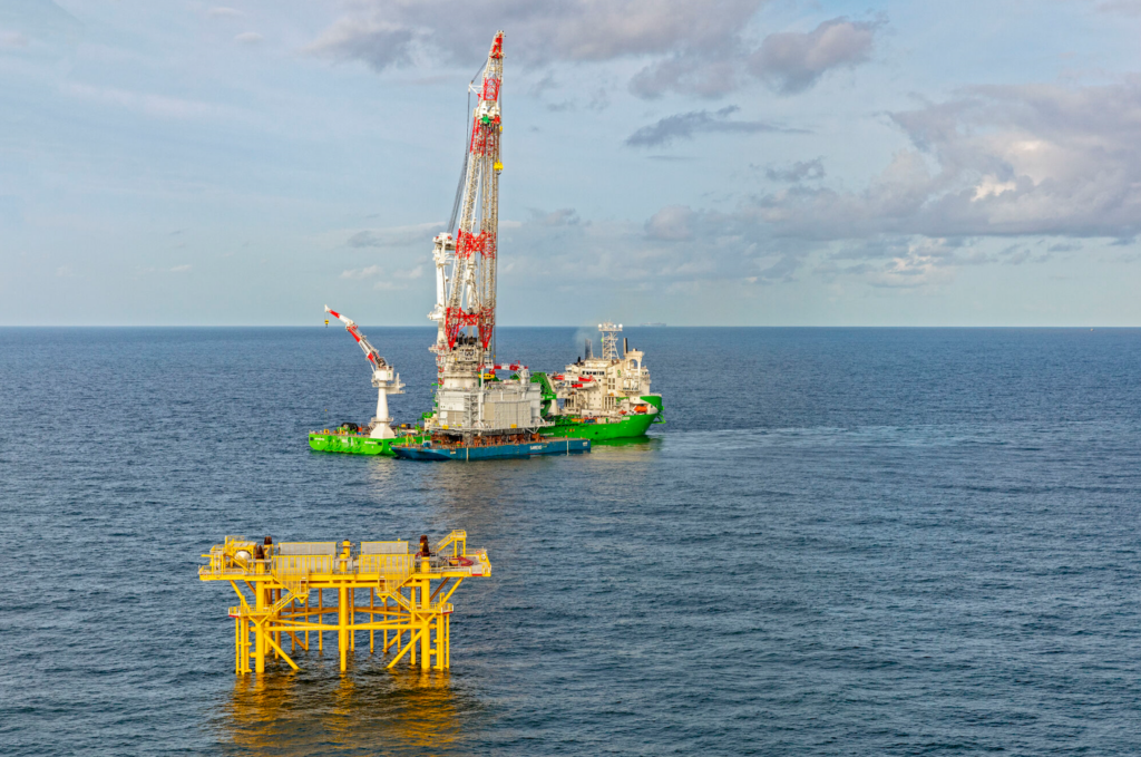 Later, a jack-up barge (lifting vessel) was placed next to the socket at sea where some 50 people will stay on the ship for the next few months to weld the topside to the jacket and take care of commissioning the installation, according to Siteur.